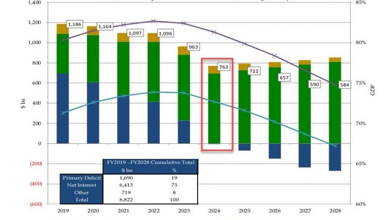 År 2024 går all offentlig belåning i USA till räntor