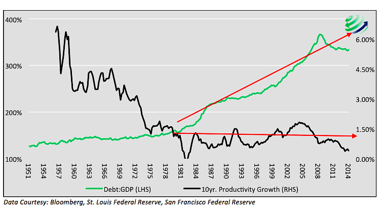 Det gick alltså åt $12 biljoner av skuld för att skapa $7 biljoner av ekonomisk tillväxt. Systemet är skuldmättat.