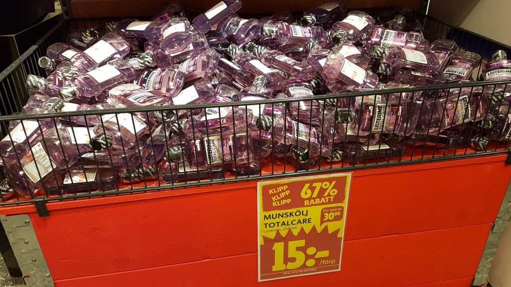 Vilket är bekvämt om det skulle vara så, då behöver vi inte ta ansvar och tänka själva, vi är helt utelämnade till slumpen och kan fortsätta skölja munnen med bensoesyra, natriumfluorid, natriumbensoat, sukralos och propylenglykol. Gurgla på Sverige, det är REA!